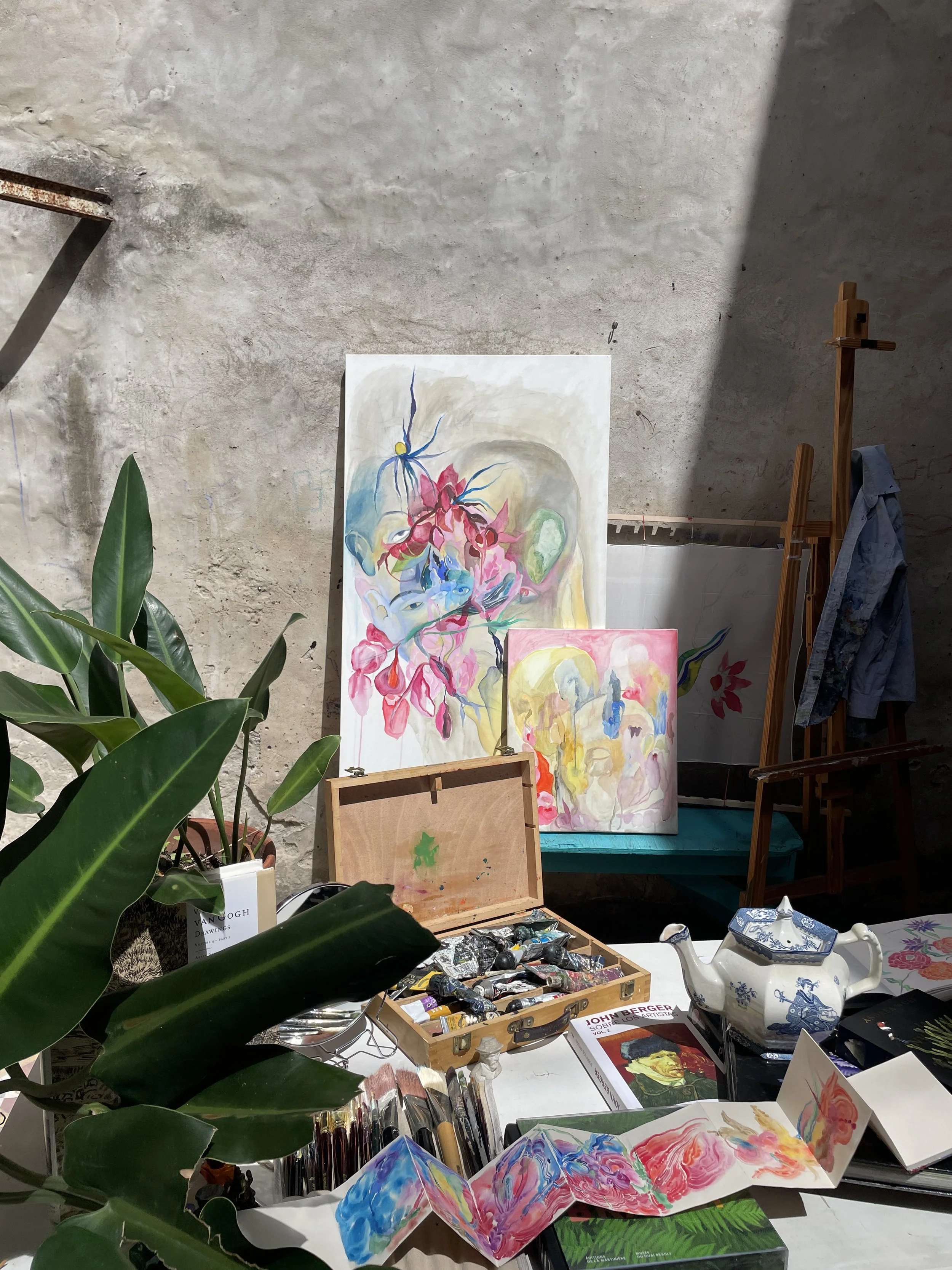 Actualmente exploro la pintura sobre seda, integrando esta técnica a mi práctica. Este Workshop nace con la intención de compartir esa exploración, en un entorno accesible, práctico y enfocado en el proceso.